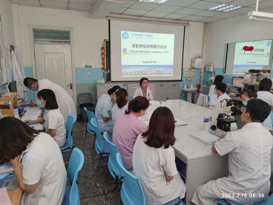 2022年7月15日,我院肾内科医生办公室座无虚席,肾内科联合病理科成功举办了我院首次“肾脏病临床病理讨论会”(Clinical Pathological conference, CPC)。本次CPC由肾内科主任王彩丽主持。