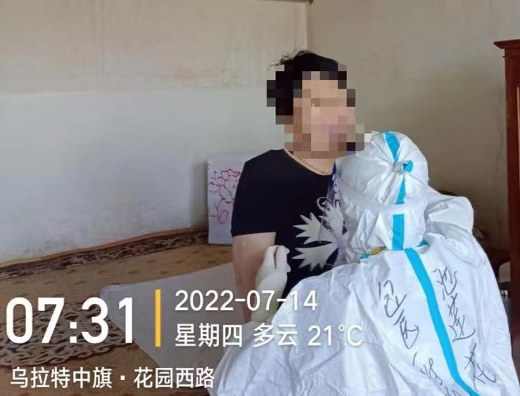从上海回来隔离结束不到一个月我再次踏上抗疫的道路,担起肩上的使命。一方有难八方支援,2022年6月9日包头市驰援巴彦淖尔市核酸采样队出征。我义无反顾的又参加到此次抗疫中。巴盟也是我的半个家乡,家 乡有难,需要我,我义不容辞。虽然出征过好几次,有抗疫经验,但是每一次出征内心还是会荡起涟漪,有父母老公的担心,有孩子的思念......但我更加明白自己是女儿,是妻子,是妈妈,更是一名共产党员,一名医务工作者,有自己的责任和使命。来到乌拉特中旗海流图镇,没有酒店,我们入住到一所中学学生宿舍,虽然条件有限非常艰苦,但我们都能克服,不怕困难,实打实干,因为我们内心都有一股战胜疫情的坚定信念。核酸采样任务重,我们必须保质保量完成任务。11 号晚上接到领导紧急通知,要进行“敲门行动”,12号凌晨12:00我们开始了“敲门行动”,挨家挨户,一户一人不落。我负责的是楼房,都是步梯房,从一栋到另一栋,从一单元倒五单元,从一楼到六楼,楼上楼下来来回回,不知爬了多少趟,衣服全都湿透了,呼吸都喘不上气。直到早上7:30才返回驻地。虽然真的是累到极限,但我没有任何怨言,只为圆满完成任务。