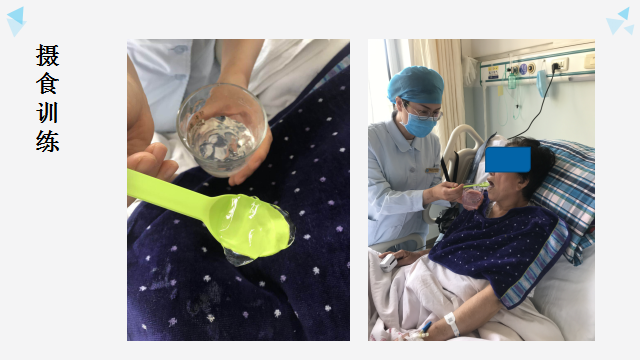 2.根据临床筛查、临床评估及仪器评估后,确认患者可以安全吞咽加了增稠剂后的各种食物,应尽早开展摄食训练。