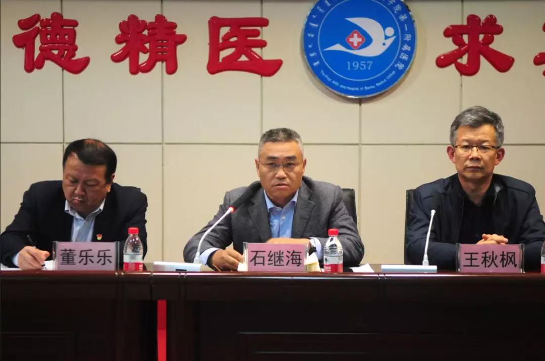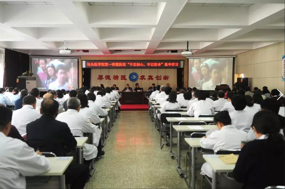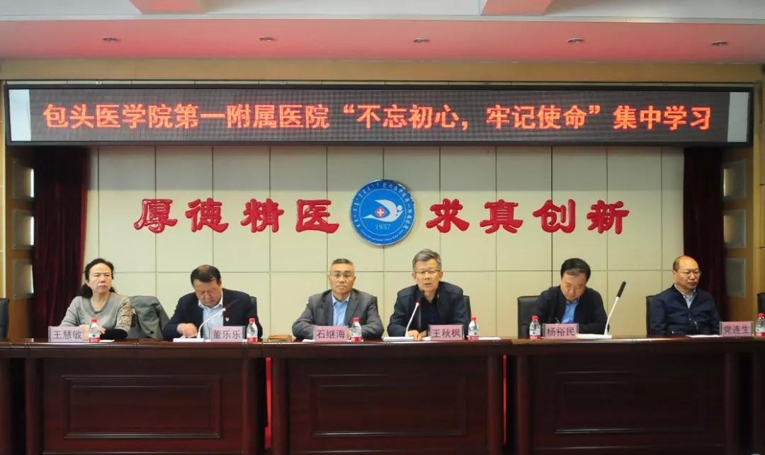 为中国人民谋幸福,为中华民族谋复兴,是中国共产党人的初心和使命,是激励一代代中国共产党人前赴后继、英勇奋斗的根本动力。为将医院“不忘初心、牢记使命”主题教育进行思想再升华,使全院广大党员干部职工更加自觉地为新时代党的历史使命而努力奋斗,2019年10月17日,包头医学院第一附属医院“不忘初心、牢记使命”主题教育第三次集中学习暨理论学习中心组(扩大)学习会在医学影像科三楼会议室召开。党委书记石继海主持集中学习,党委副书记、院长王秋枫,党委副书记、副院长董乐乐,党委委员、副院长杨裕民,党委委员、纪委书记王慧敏,党委委员、副院长党连生带头领学。各党支部书记、各科室主任、护士长参加了集中学习。
