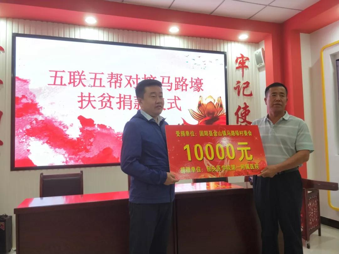 阴山北麓,美丽固阳。2019年9月11日,包头医学院第一附属医院“五联五帮”扶贫小组赴固阳县金山镇马路壕村开展了中秋国庆慰问活动。活动期间,包头医学院第一附属医院向马路壕村委会捐款壹万元用于该村人居环境治理及其他公益事业。扶贫小组对五户扶贫结对户进行了走访慰问,让贫困户真正感受到医院广大干部职工的关心与温暖。扶贫小组还就固阳县银号镇德成永村修建水井事宜与扶贫驻村工作队和德成永村委会负责人进行了协商沟通。