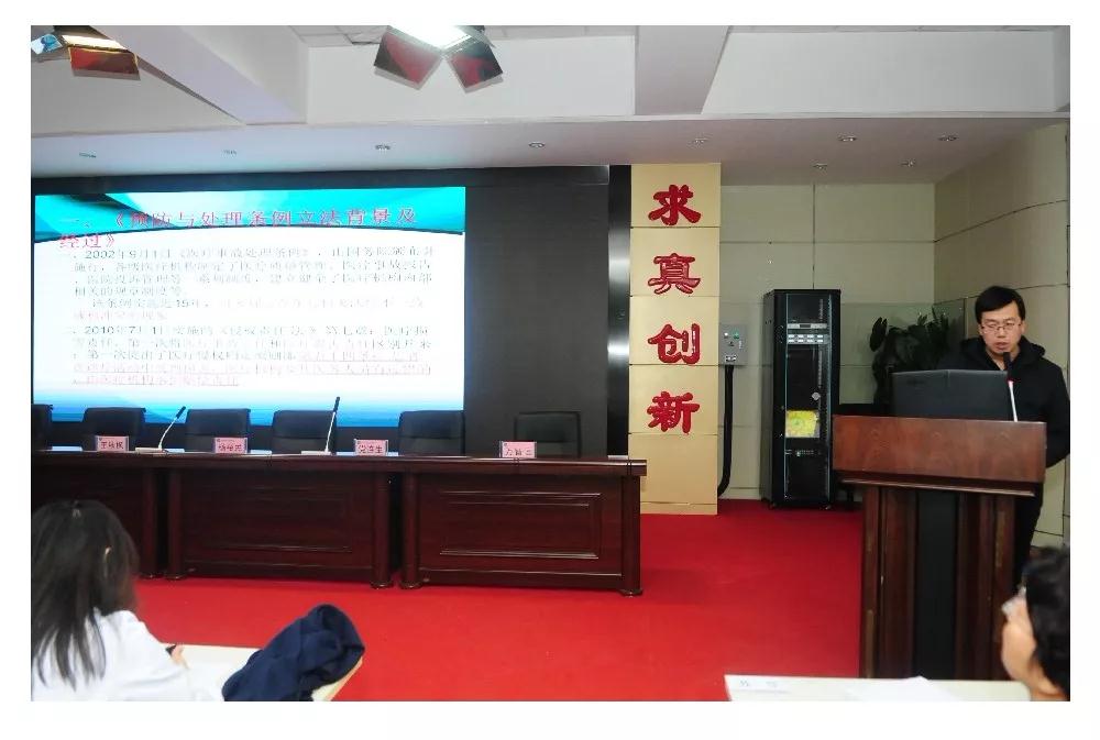 会上,赵虎平主任介绍了《医疗纠纷预防与处理条例》颁布的时间和背景,并就医疗领域法律、法规、制度概念、医疗纠纷预防、医疗纠纷处理、法律责任等方面进行了详细地解读。