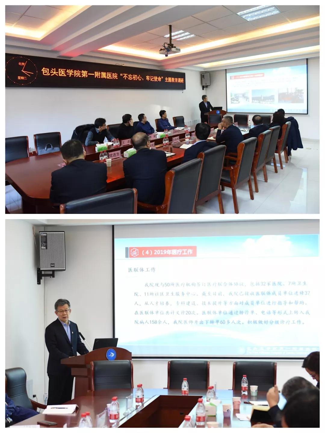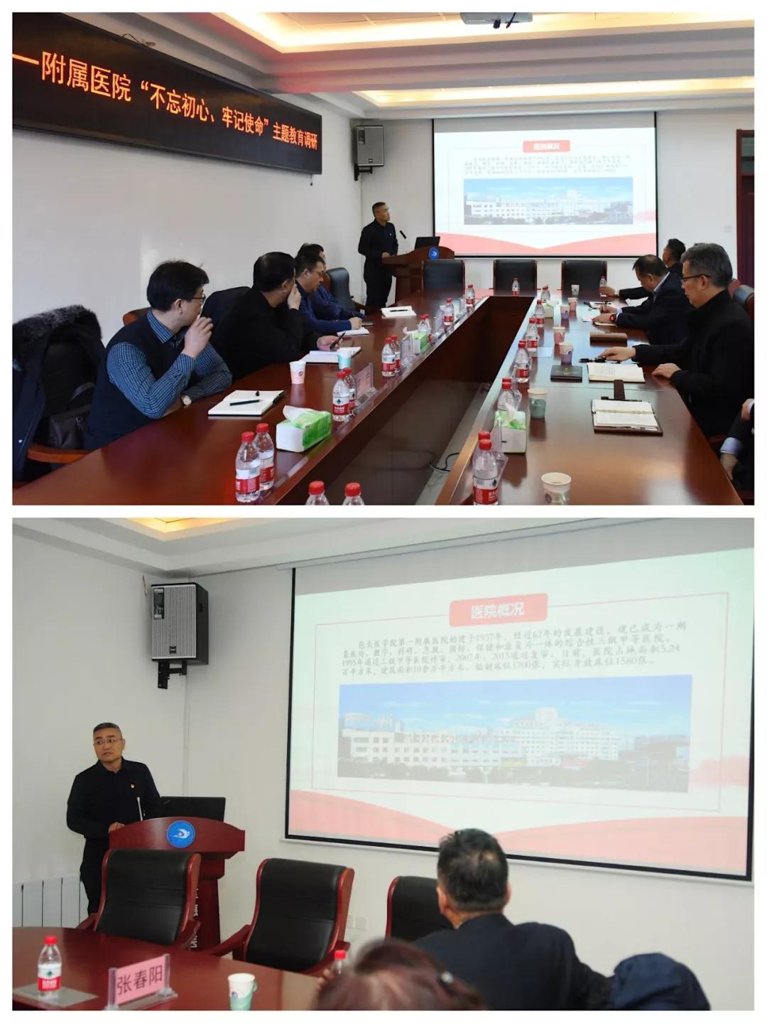 为扎实推进“不忘初心、牢记使命”主题教育,坚持把调查研究贯穿始终,确保主题教育取得实效,2019年12月10日下午,包头医学院党委书记韩猛深入我院开展“不忘初心、牢记使命”主题教育专项调研。包头医学院党委组织部部长张晓利、党政办公室主任王忠、人事处处长周成江陪同调研。我院领导班子成员和相关科室负责人参加调研。