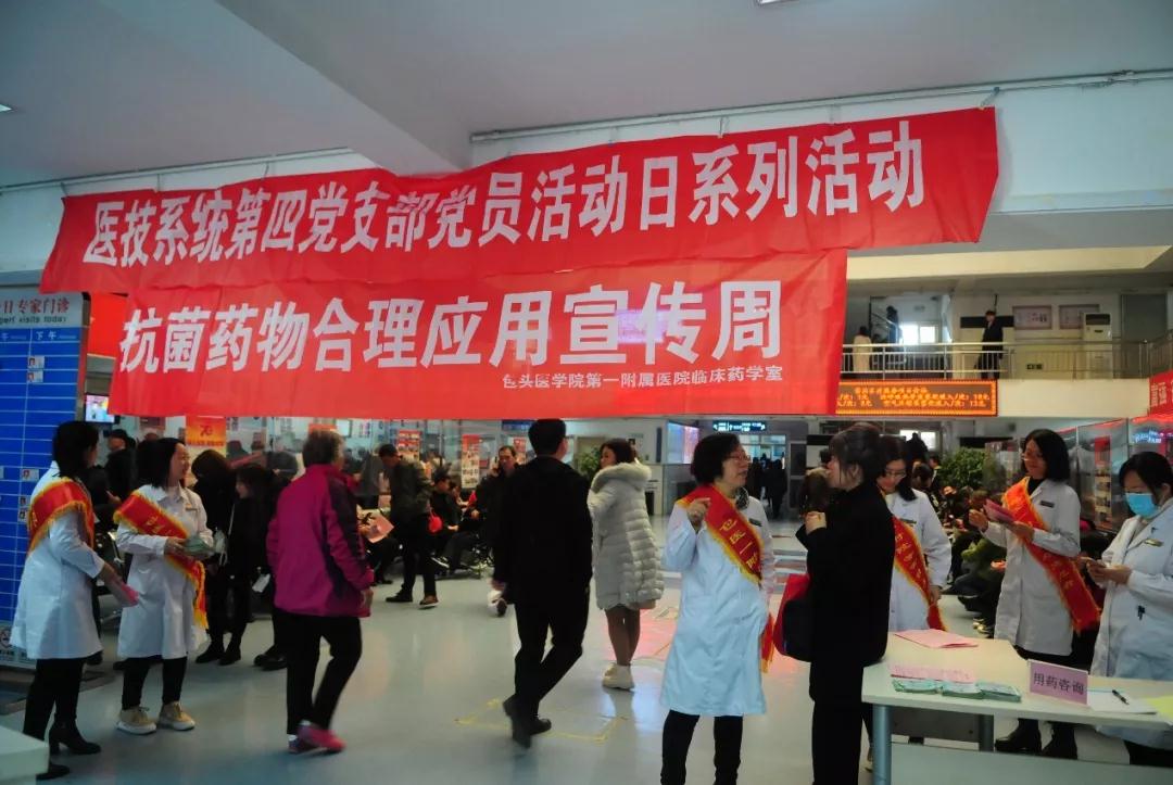 宣讲活动中,包医一附院医技系统第四支部党支部书记、临床药学室主任、主任药师董志强带领支部党员和医务人员针对抗菌药物的定义、如何正确使用抗菌药物、公众使用抗菌药物的误区、滥用抗菌药物的危害等内容为群众进行了宣讲,并为就诊咨询的患者答疑解惑。当天的宣传活动共向群众发放宣传资料500余份,活动现场气氛热烈。
