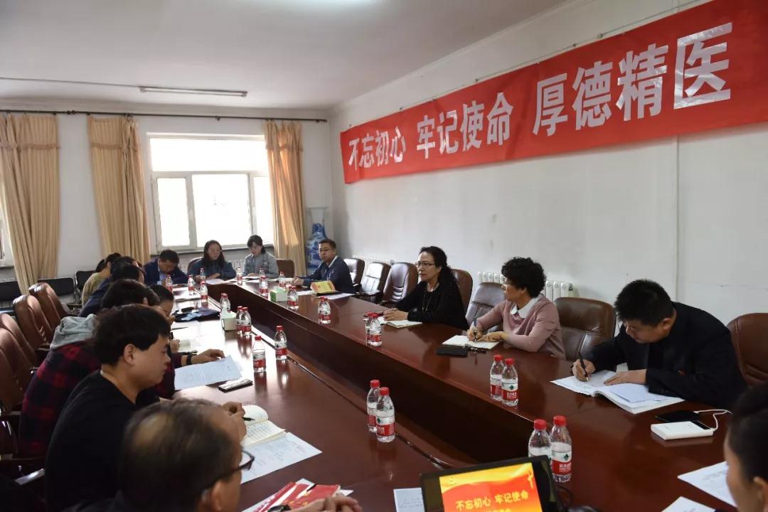 10月22日,党委委员、纪委书记王慧敏与内科系统第五党支部和行政第一党支部的党员们共同交流了“不忘初心、牢记使命”主题教育研讨心得。王书记从增强理论学习,提高思想意识,推进主题教育落地生根;锻造优良作风,学习英雄前辈、全面推动从严治党纵深发展和牢记党的宗旨,铭记职责,做忠诚、干净、担当的纪检监察干部三方面与党员们进行了学习分享。