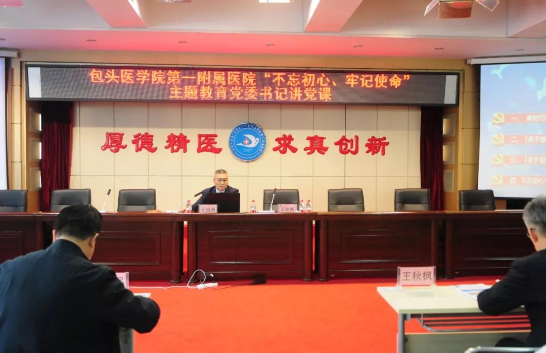 石继海就进一步学习落实好《关于加强公立医院党的建设工作的意见》精神和践行共产党人不忘初心牢记使命的宗旨,向全院广大干部职工提出要求。他强调,要深入贯彻落实习近平总书记系列重要讲话精神,进一步深化对“初心使命”的感悟,真正做到理论学习有收获、思想政治受洗礼、干事创业敢担当、为民服务解难题、清正廉洁作表率,切实把思想行动统一到学校党委和医院党委确定的中心工作上来,努力实现学校第六次党代会确定的“七个一”奋斗目标,继续弘扬“敬佑生命、救死扶伤、甘于奉献、大爱无疆”的崇高精神,努力将医院建设为内蒙古西部地区的医教研中心。