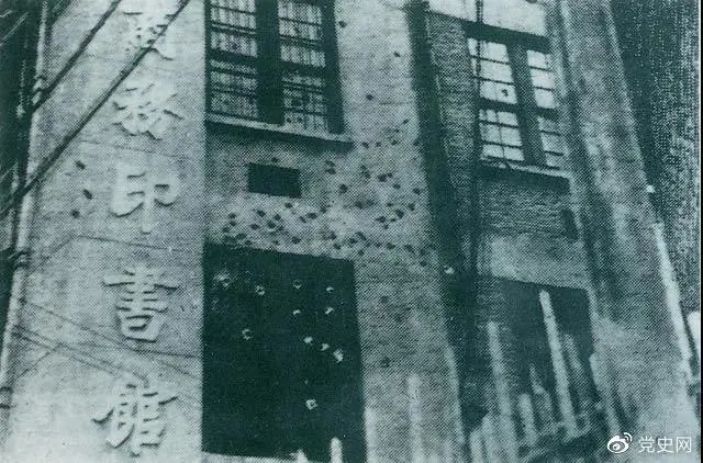 1927年4月12日,蒋介石在上海发动反革命政变,上海工人纠察队总指挥部所在地商务印书馆遭到袭击,大楼上弹痕斑斑。