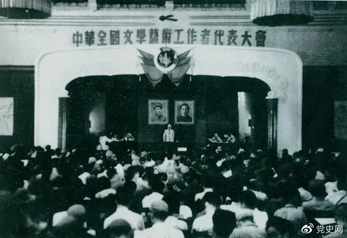 7月2日 第一次中华全国文学艺术工作者代表大会在北平开幕,19日闭幕。朱德总司令代表中共中央致词,号召全国的文学艺术工作者团结起来,加强工作,迎接人民民主专政的新时代。与会的文艺界人士在文艺思想、文艺方向上形成共识,把毛泽东《在延安文艺座谈会上的讲话》提出的“文艺为人民服务、首先是为工农兵服务”的方针,确定为今后全国文艺运动的总方向;提出面向人民革命胜利的新的现实,为建设新中国的人民文艺而奋斗的任务。大会成立了中华全国文学艺术界联合会全国委员会(简称全国文联)及下属各类文艺协会,担负起指导和推进人民文艺事业发展的任务。